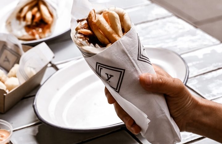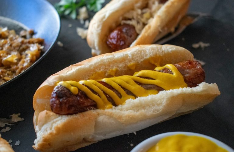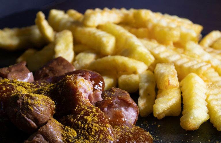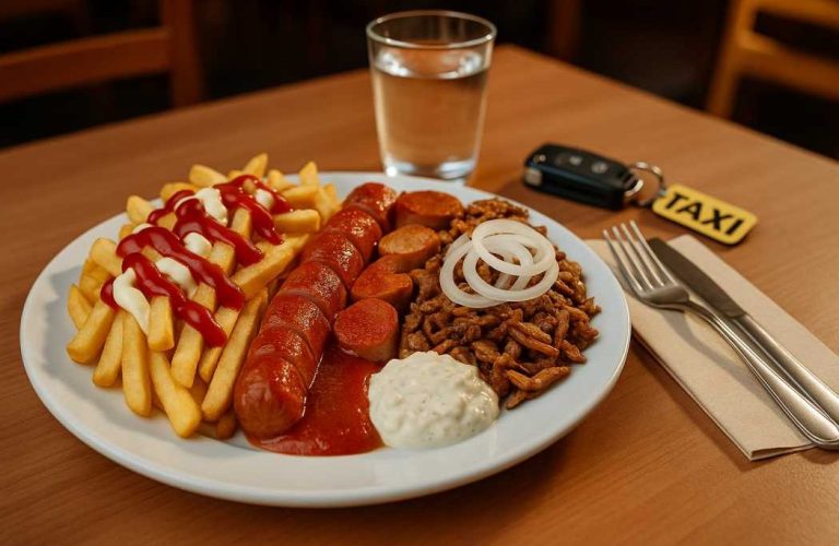 Mit Pommes, Tzatziki, Zwiebeln, Tomate, Ketchup & Senf