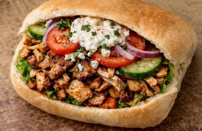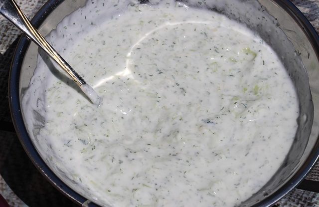 Mit Tzatziki, Kraut, Zwiebeln, Tomate