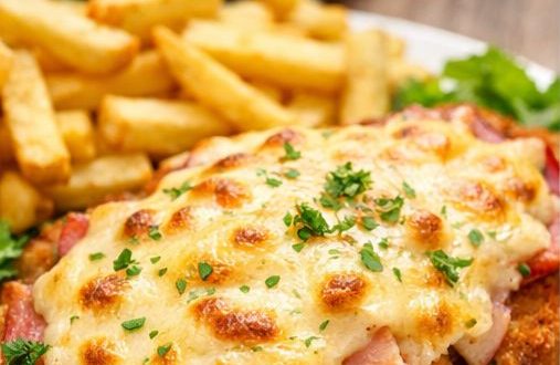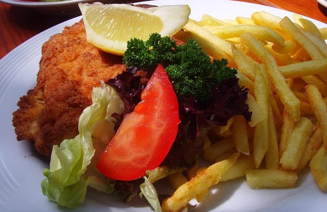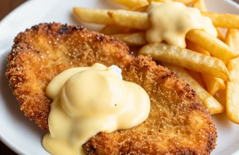 Schnitzel mit Pommes und Hollandaise - überbacken
